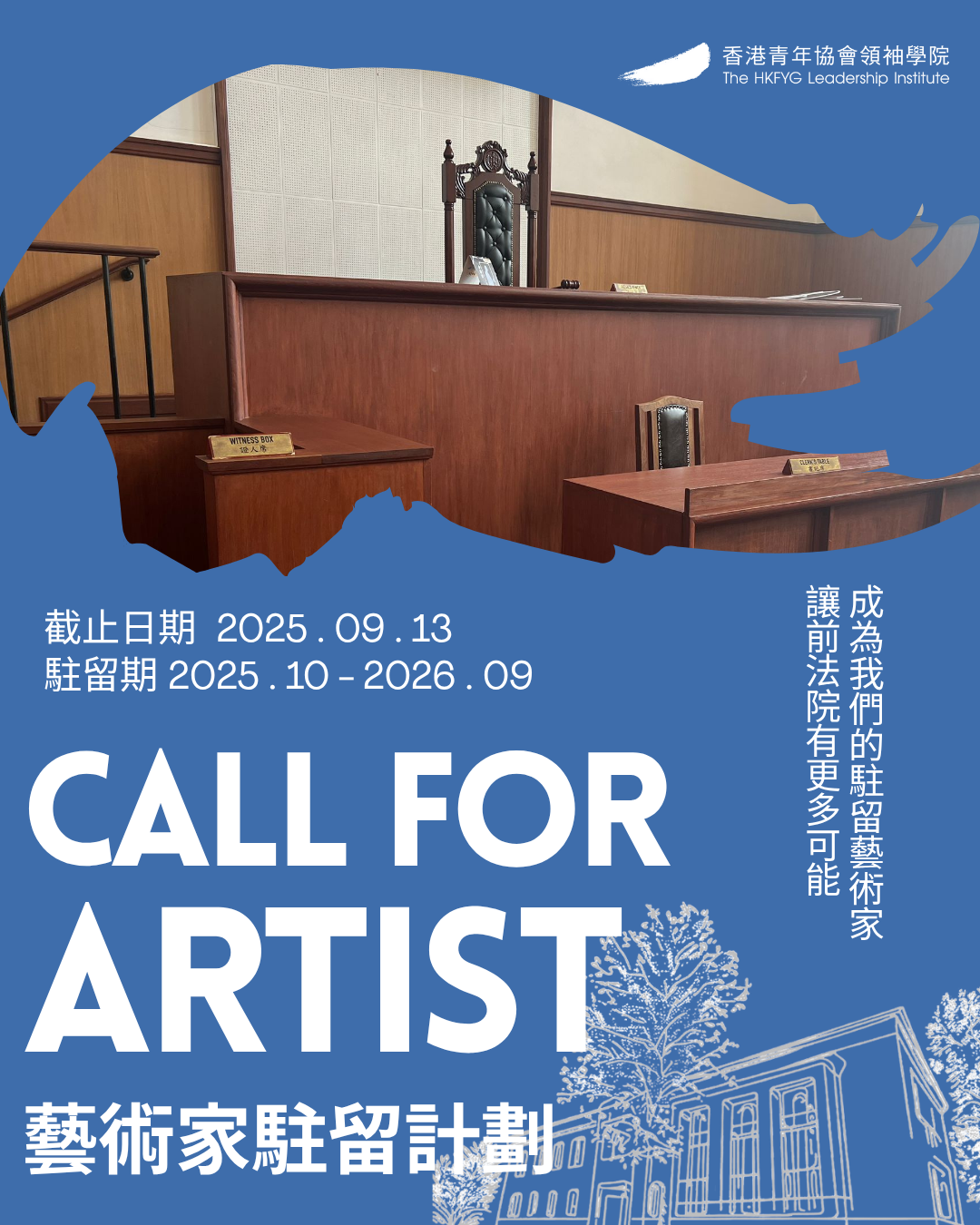藝術家可於香港青年協會領袖學院(下稱「學院」)這座具歷史價值的活化建築中自由創作,藝術形式不限,一同探索社區文化。計劃提供創作空間及交流機會,激發藝術靈感。歡迎本地藝術家提交希望在建築內開展的創作提案,與我們一同將藝術融入這個擁有獨特文化背景的建築!
