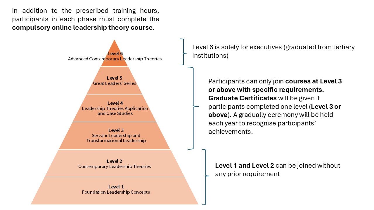 The HKFYG Leadership Skills Qualification Framework is a 6-level system. Courses will be assigned to different levels according to their difficulties and the required skillsets at each level. Participants are required to attend certain hours of training in order to complete one level of training. Participants cannot take courses in the next level if they cannot complete the assigned levels. The Institute will create portfolio for each participants in order to record their courses enrolled, certificates achieved and leadership training journey.